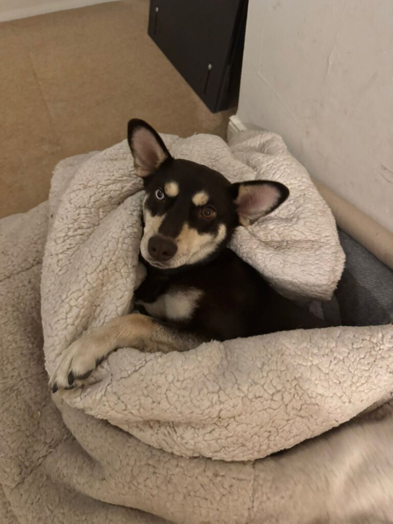 She has some separation anxiety, which is why another dog companion could really help her. As I work from home I’ve noticed she has learned to open internal doors — she is very clever and simply wants to be with people.