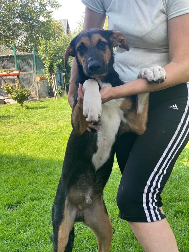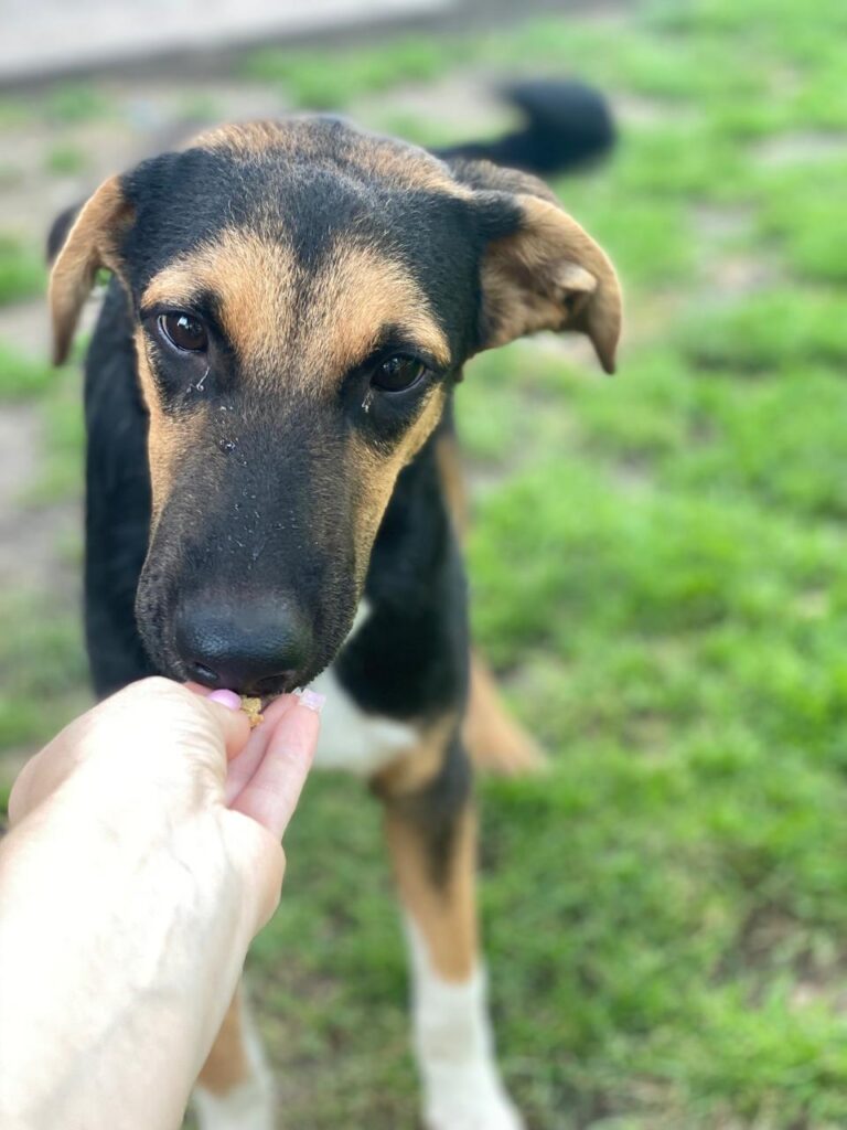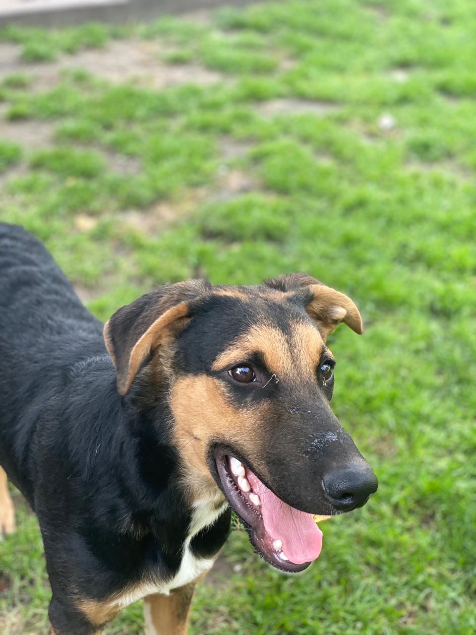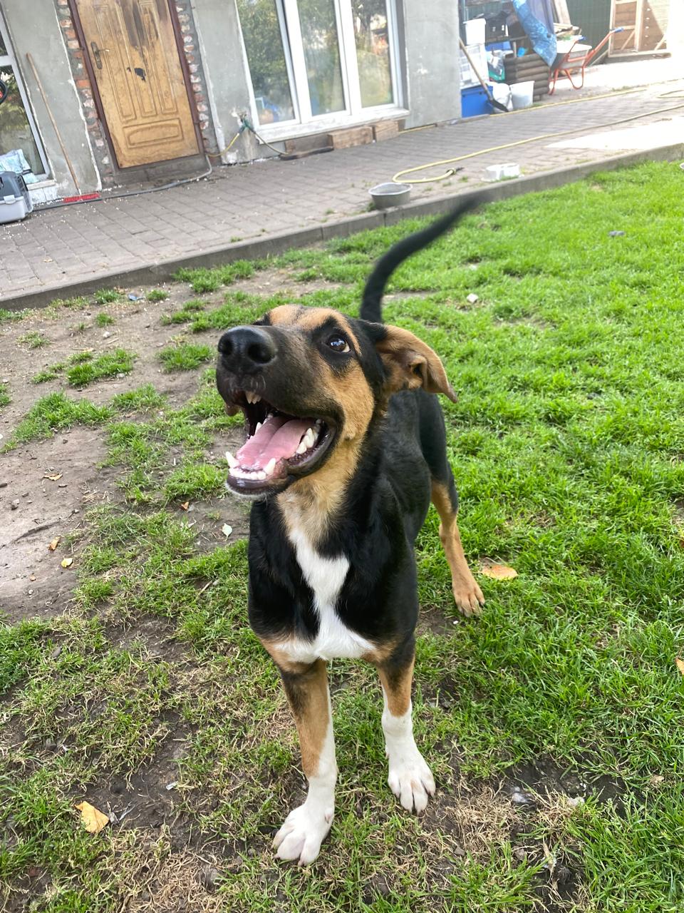 Bruno was born during the war, on a frontline, to a dog rescued by soldiers from a ruined village. He and his siblings were evacuated to the western part of Ukraine and raised safely in foster care, surrounded by kindness, space and other dogs. He grew up loved and secure — but with limited exposure to busy urban environments.