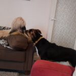 “Ive been workin with Bruno loads the last 2 weeks on meeting new dogs and people and he’s doing so well. He lets me stop and speak to people and waits calmly without shouting and jumping around.”