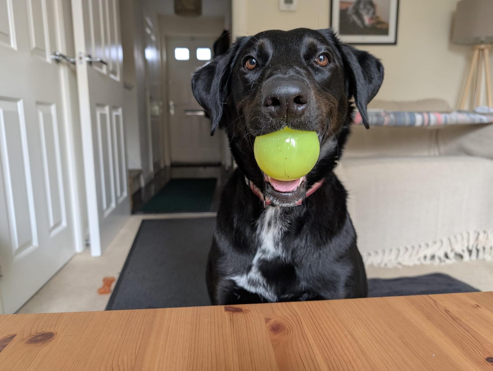 Her family described how she will play ball for ages and how this is one of the best ways to help her burn energy. She even played ball with a 6-year-old child without issues. She can is clean and well-behaved indoors, she can wait for food, wait at the door.
