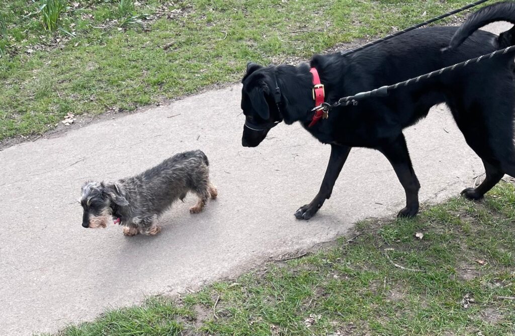* DOGS: not lived with other dog for a while, outside is currently reactive, needs management
