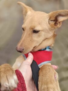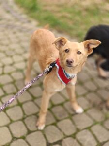 She plays nicely with other dogs, enjoys discovering the world, and has that tender sweetness that makes you want to protect her forever.