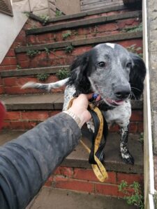 I met and assessed her myself β she is sweet, loving, social, slightly submissive but not fearful, eager to bond, and wants so much to please. Sheβs smart, sensitive, and full of joyful, bouncy enthusiasm. She loves her walks, running, exploring, and especially anything that involves a ball β itβs pure happiness for her.