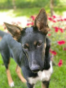 💕 Linda is just 9 months old upper-medium to large girl. Linda is a strikingly beautiful mixed-breed girl, possibly with some German Shepherd heritage, and often receives compliments for her appearance. She is friendly, affectionate, and enjoys human contact.