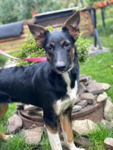 “She is young, energetic and still learning, so she will need continued structure and training. She gets on well with other dogs and enjoys being around people, but she can get very excited when greeting familiar faces. This shows as jumping up and mouthing — something we’ve been working on and seeing progress with, but it will need to be continued in her next home.”
