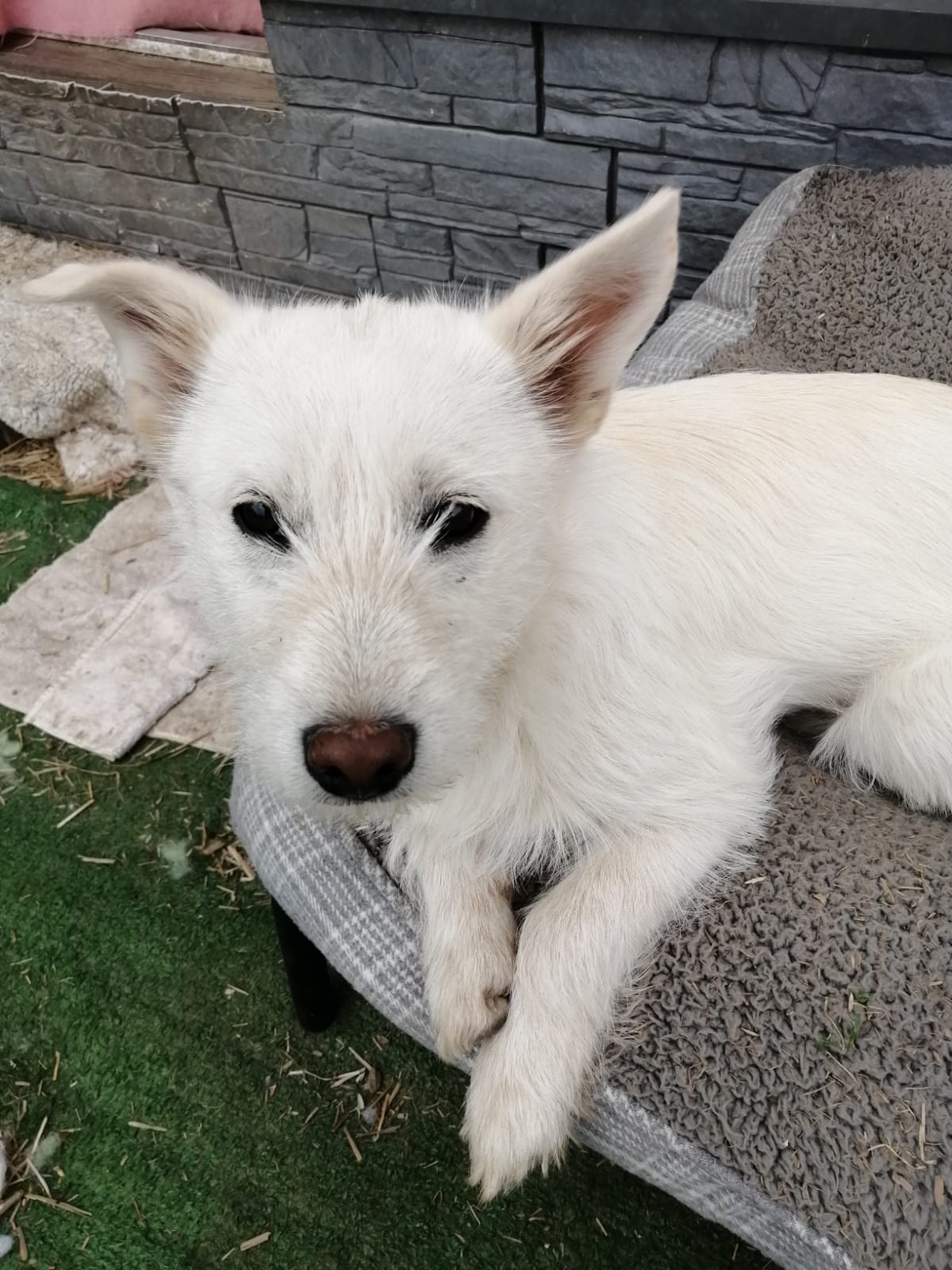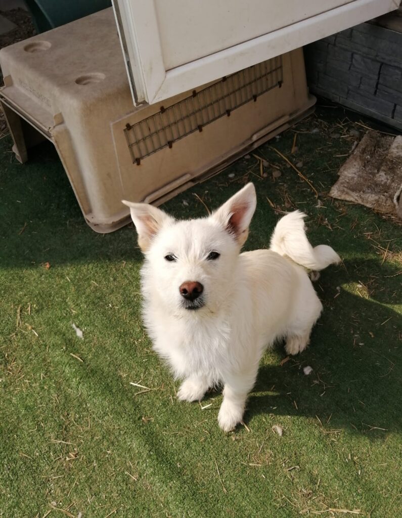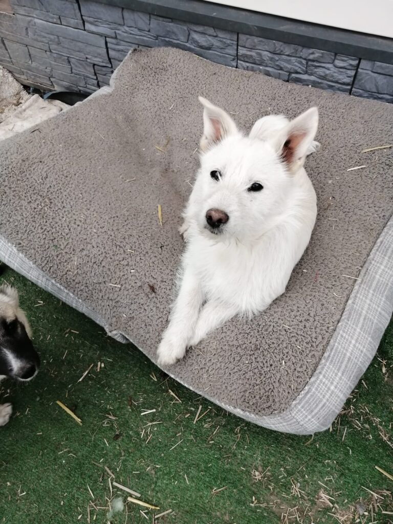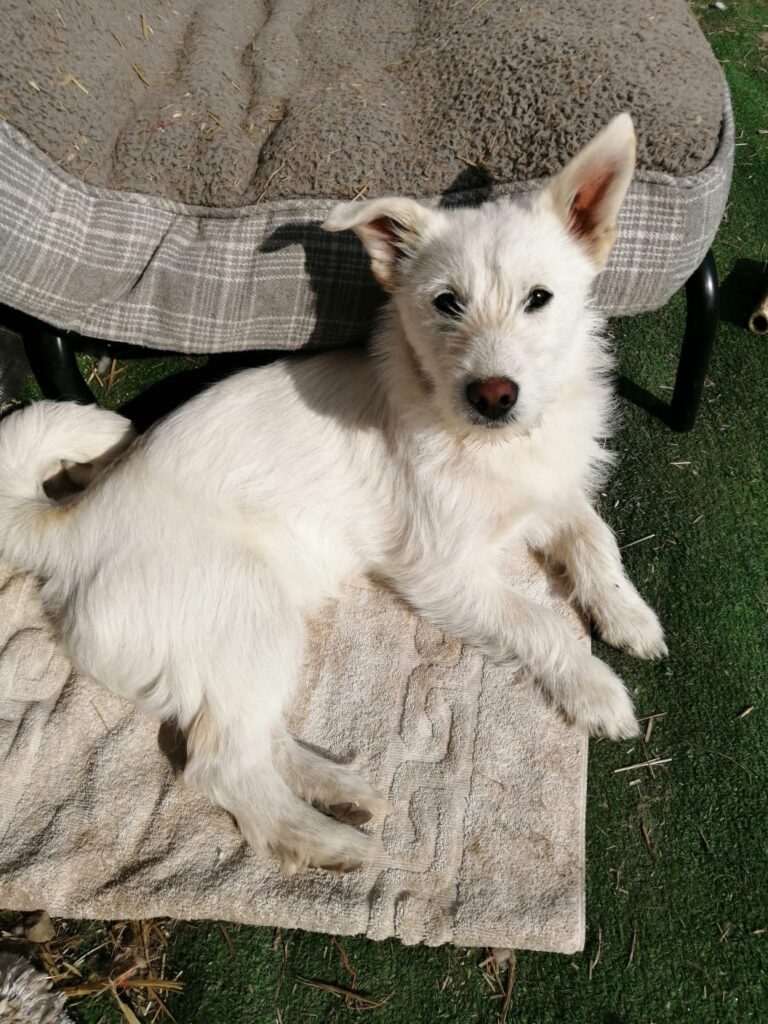 She is active and playful, enjoys running and games, and is always involved in what’s happening around her. Despite her small size, she can jump over 4ft, so a secure garden with 6 ft fence is essential.