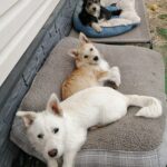 With other dogs, Malibu has a strong personality. There is no aggression, but she naturally sees herself as “in charge” and expects others to respect her boundaries. Sometimes she is absolutely happy to share space and beds, but also sometimes may choose when she wants distance. She does not allow other dogs near her food bowl.