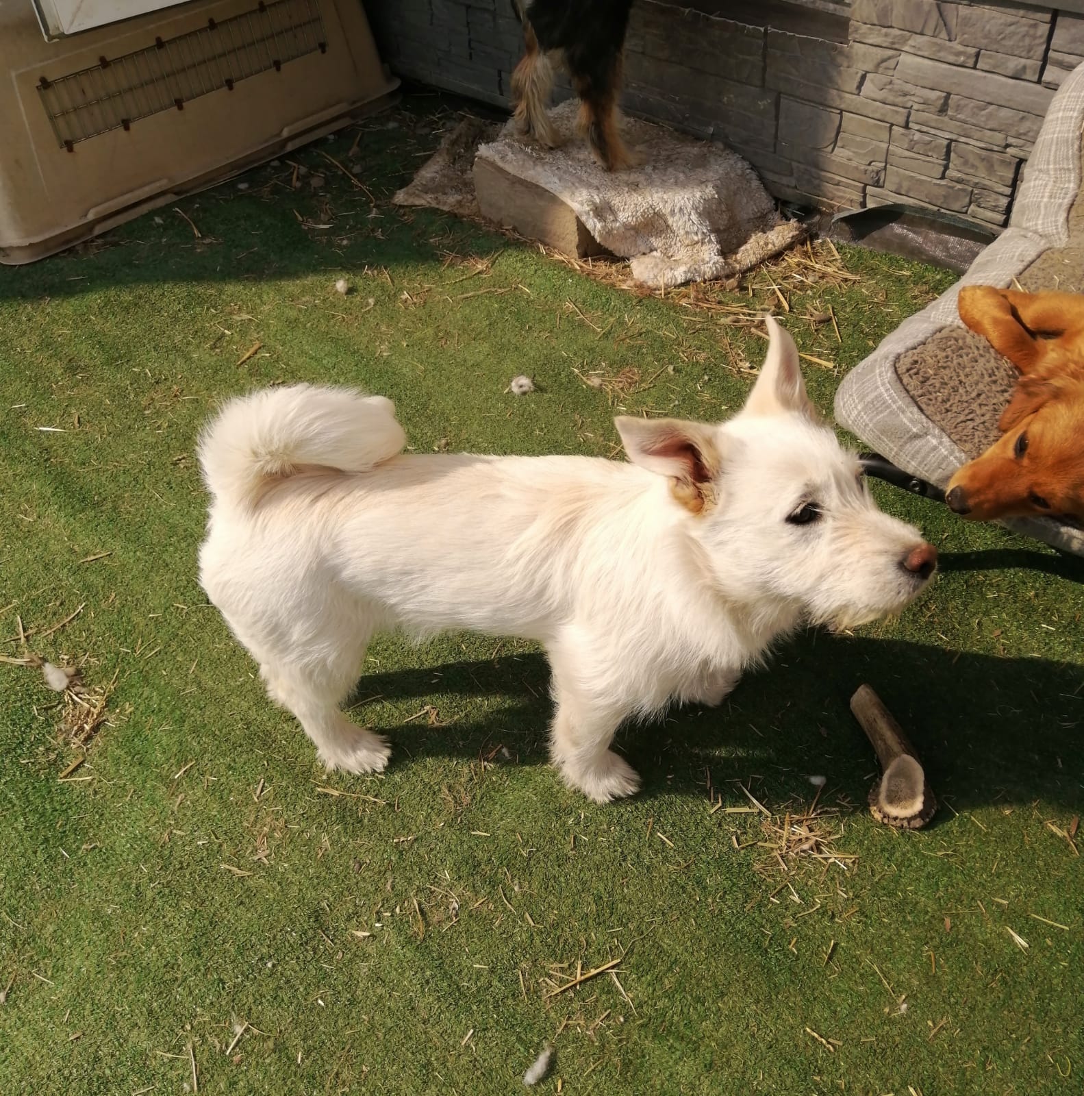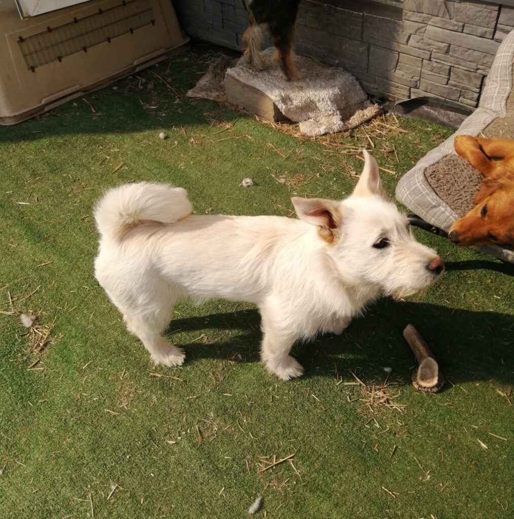Malibu would suit an active, involved home where she can be part of everything — walks, play, daily life. She needs structure, and people who appreciate her quit typical terrier personality. A house with secure garden as she loves to spend time outside. If she will be the only dog, she needs playdates or group classes to socialise with other dogs and play with them.