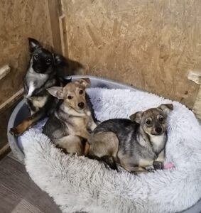 I met them myself during my winter visit to Ukraine. I visited their foster home and can confirm personally — these are very sweet, loving pups, full of beans, but even more full of love.
