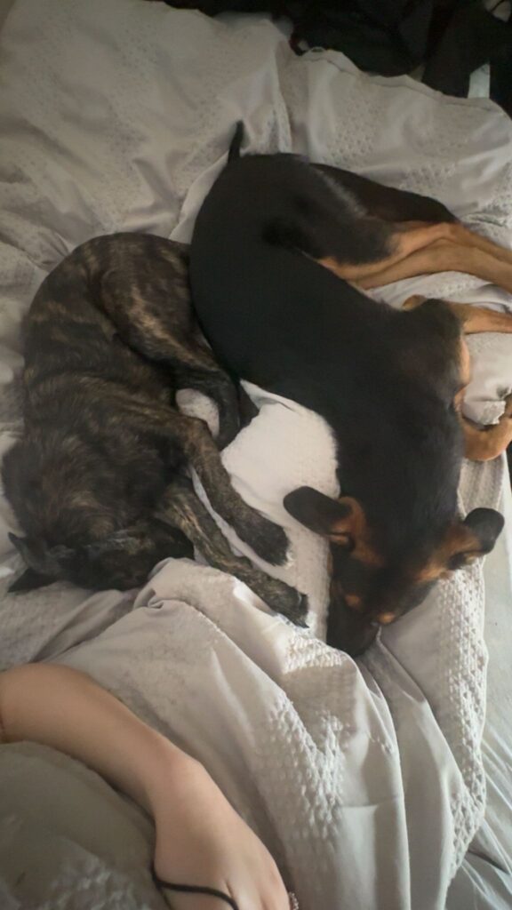 In the home, Milo’s anxiety currently shows through destructive behaviour with shoes, and through barking at cats, particularly at night. These are signs of stress and lack of confidence rather than aggression. With the right structure, training, and calm handling, these behaviours can be improved.