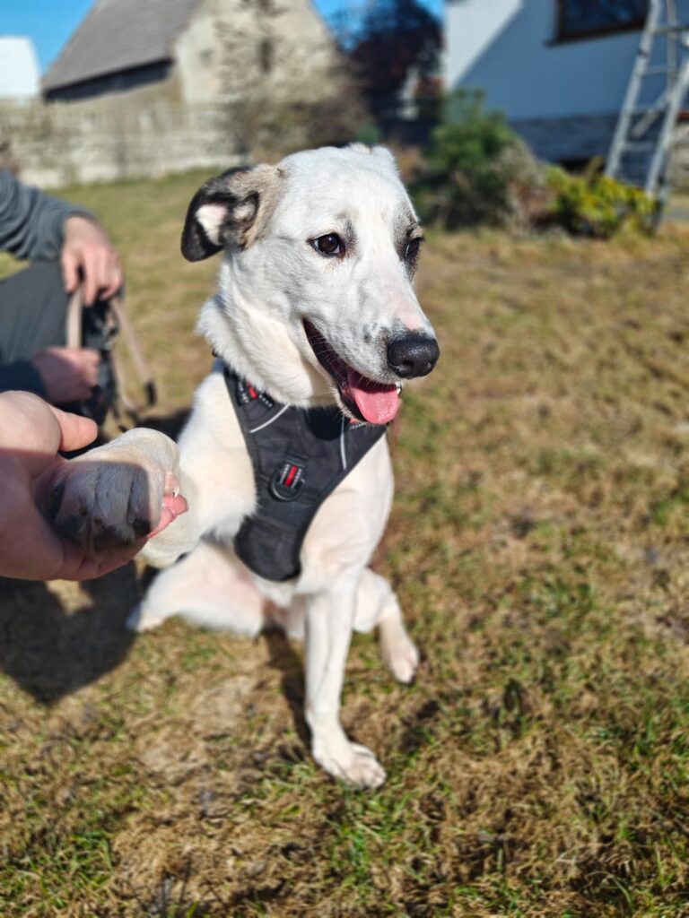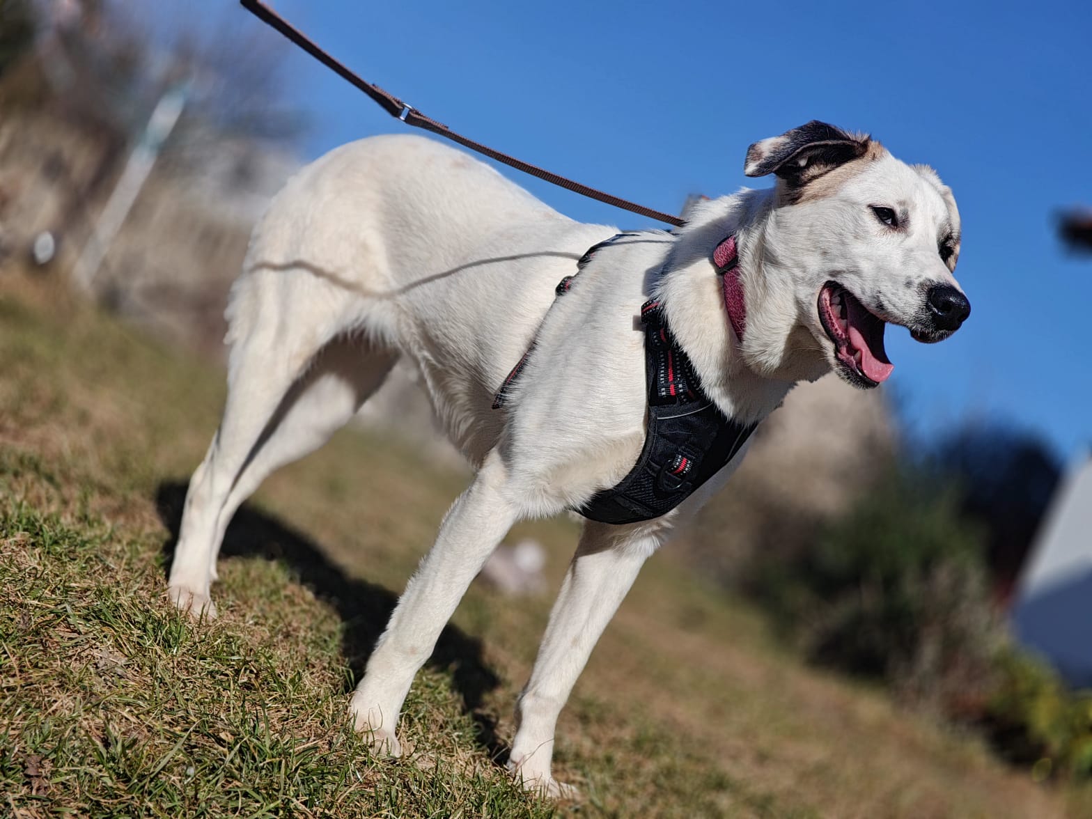 Pliamka will suit an active, engaged home where she gets plenty of interaction, stimulation, and affection. She would be very happy living with another friendly dog, as she loves canine company, but could also thrive as an only dog if her people are around and involved. She needs humans who enjoy training, play, and building a bond — she gives her whole heart in return. Older, respectful children will be a lovely match for her lively but gentle nature.