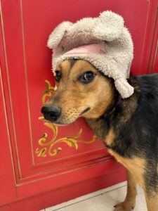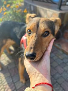Rapunzel lives in-house at her foster home and is fully housetrained. Indoors she is a calm, polite and easy dog — she doesn’t chew, doesn’t bark excessively, sleeps soundly through the night, and keeps her space clean. She finds comfort in having her own cosy corner and familiar toys, which help her feel grounded.