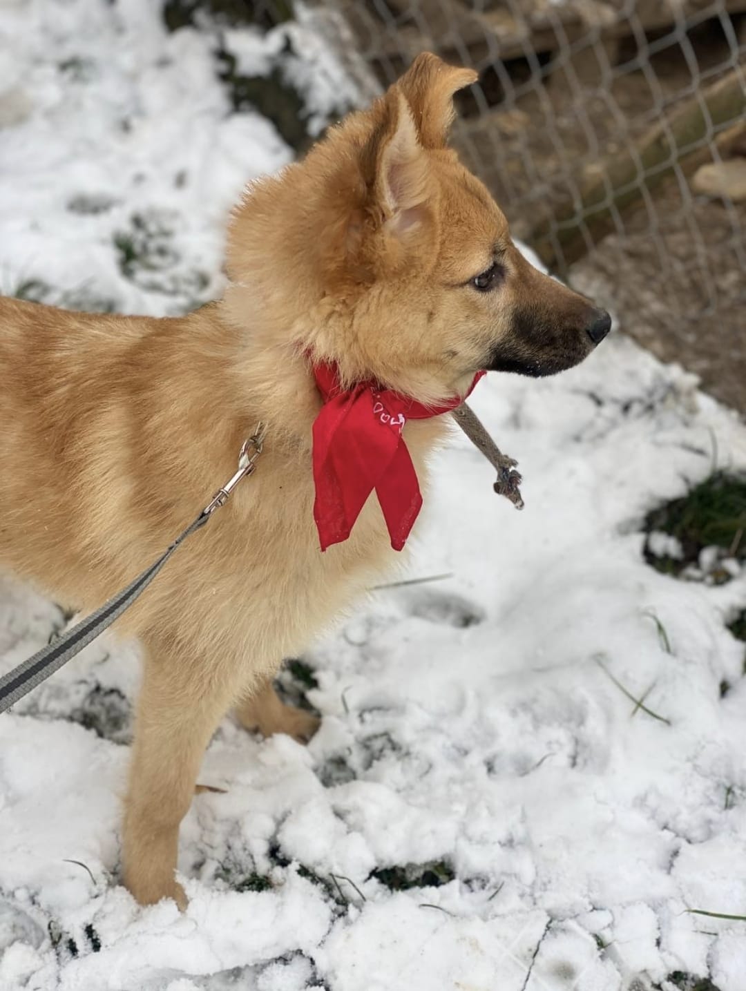 • SIZE: Lower-medium (46 cm / 14 kg, below the knee), still growing, expected to be 2-3 cm taller