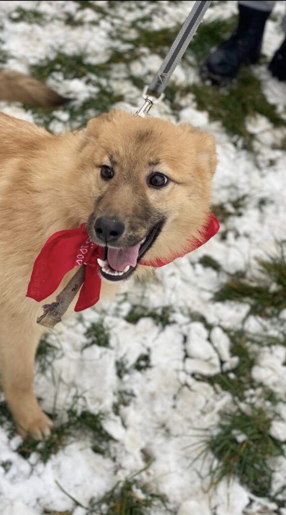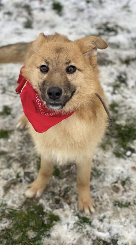 Regina is 8 months old and pure joyful energy wrapped in a gentle heart. She doesn’t hesitate — she runs straight to people, ready to be close, ready to feel needed. She looks bigger on pictures, but in reality, is below the knee now, although still will grow 2-3 cm taller.