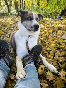 Shelly has a naturally active temperament: she loves long walks, games, and any activity where she can move, explore, and be involved. She is clever, responsive, and would love a family who enjoys engaging with their dog — whether through play, training, or simply spending time together. Indoors she’s affectionate and people-focused; outdoors she’s full of energy, enthusiasm and joy.