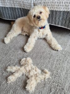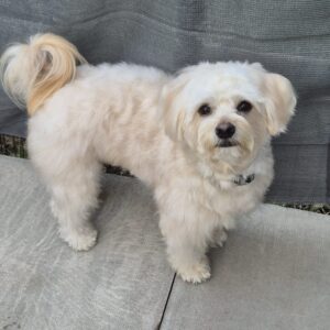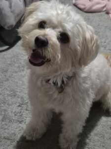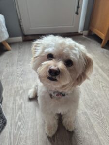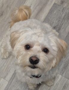So here is Teddy again — a three-year-old, small-to-medium Maltichon (Maltese × Bichon Frise), a soft, fluffy, intelligent boy with a heart full of love — and anxiety that he can’t manage alone. His current owner, who has him since he was a 12-week-old pup, can no longer meet his needs due to own health issues and Teddy’s separation anxiety.