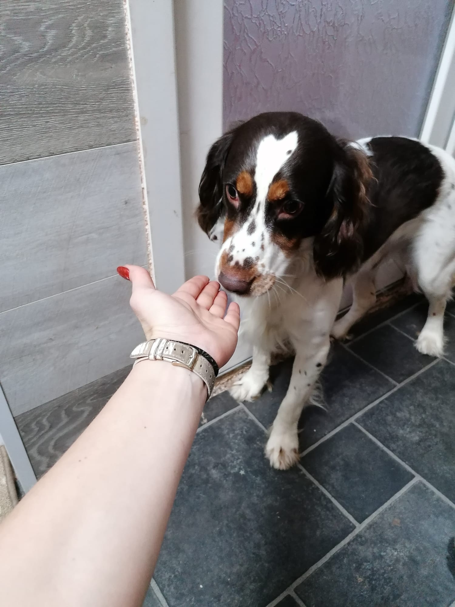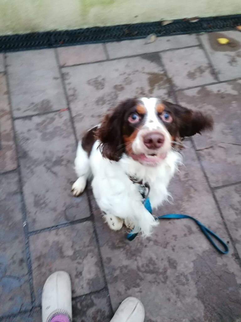 Tommy needs a semi-rural or rural environment with fewer everyday triggers, an active, confident active not elderly owner, and a predictable routine. He will thrive with someone who enjoys walking, training and engaging with a young spaniel’s mind and energy.