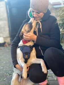 She can be a little shy when meeting new people at first, but this passes quickly. Once she feels safe, her trust comes easily and naturally. She is affectionate without being clingy and has grown up surrounded by dogs, which gives her confidence and calmness in canine company.