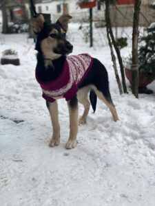 Gita is the more outgoing of the two. She runs straight in for cuddles, eager to be involved in everything around her. She is lively, playful, and very people-oriented, thriving on interaction with humans, dogs and children alike. Gita loves being part of a group and would suit an active family who enjoy walks, play and shared time together.