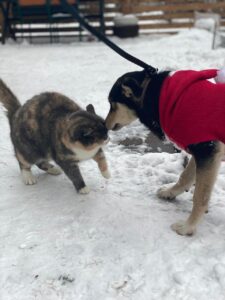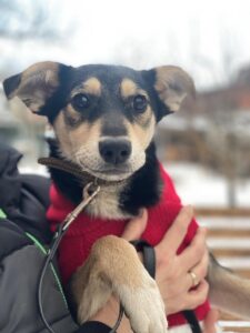 Zita is the calmer, more thoughtful sister. With new people, she approaches gently and with interest, preferring to take a moment before fully engaging. She enjoys affection quietly, standing patiently while being stroked, and finds comfort in the presence of other dogs. She loves toys, enjoys playtime, and feels most confident when she has a canine companion to mirror and learn from. Zita would be a wonderful match for a home with another friendly dog and older children.